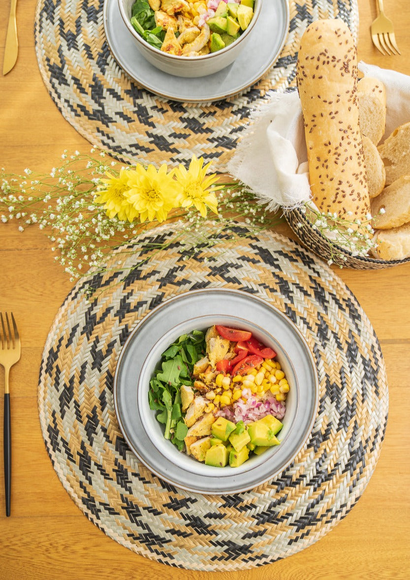Features: Measurements: 38 cm in diameter.Made in palm.Liquid resistant. Each placemats...