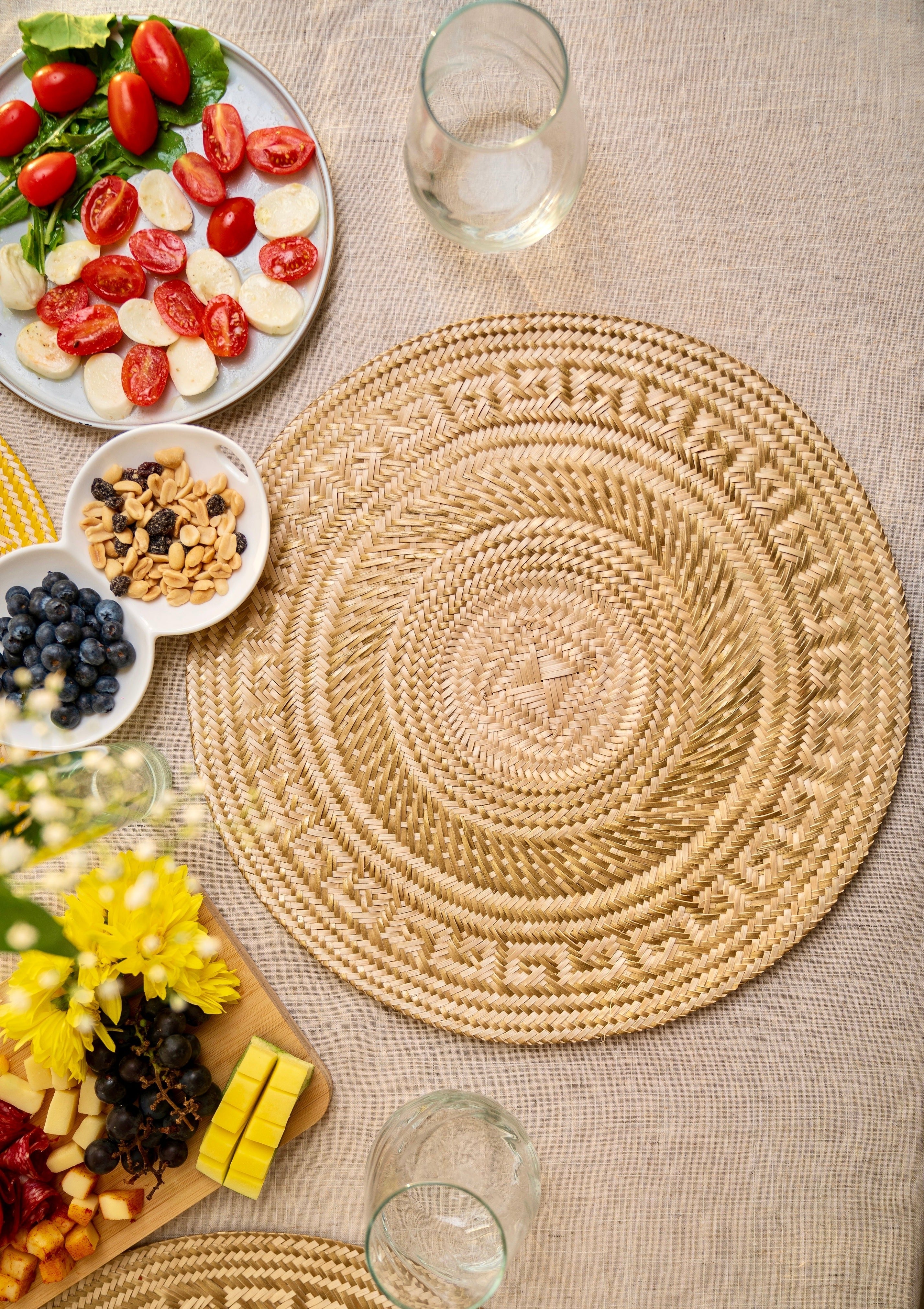 Features: Measurements: 38 cm in diameter.Made in palm.Liquid resistant. Each placemats...
